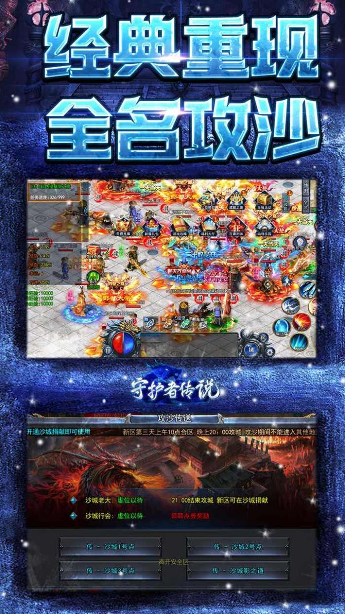 游戏画面清晰精致打击感实足。完美还原冰雪,原汁原味复刻传奇核心玩法,多人BOSS夺宝,血战沙城PK,还原经典传奇场景。 本服无任何绑定限制,自由交易,上线免费送自动挂机,一切全靠爆游戏中获得的灵符,装备,材料,打怪均能掉落!!!