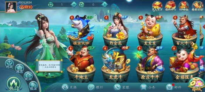 **更有人性化的游戏大厅,根据自己的不同需求进入不同的房间;