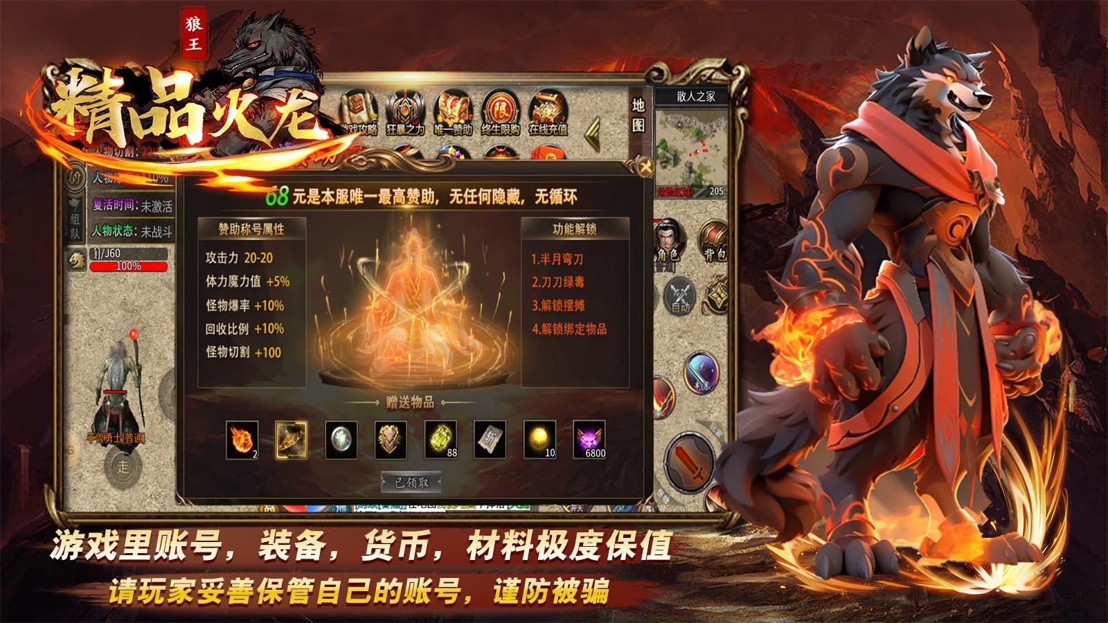 总之,狼王精品火龙是一款充满激情和挑战的传奇手游,玩家可以在这里体验到刺激的战斗、华丽的技能和丰富的奖励。快来加入狼王的世界,挑战最强狼王吧!