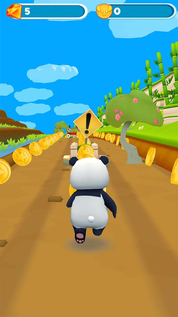 熊猫跑步冒险(panda run:super running game)是一款非常刺激的冒险跑酷小游戏,玩家需要控制熊猫在画面中,进行闯关,躲避各种危险,通过各种关卡,不断的探索新的画面,完成游戏的任务,可以合理的使用手中的道具,让自己更轻松的过关。