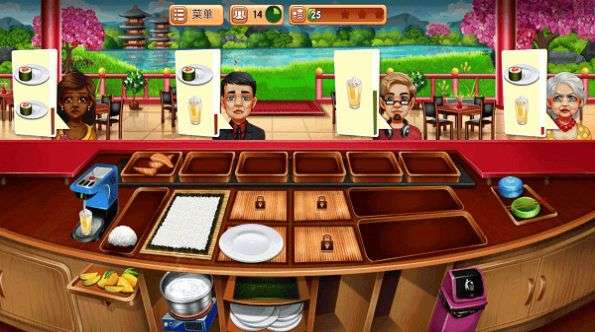 3、游戏中的制作是基本的,但是接待客人也是相当重要的一部分.玩家需要密切关注各个时间记录,包括限时产品和排队等待信号。