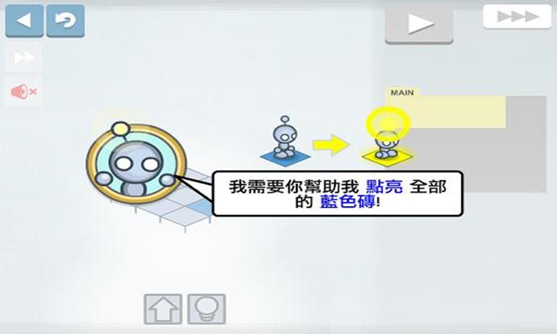 游戏玩法:玩家通过触摸屏幕来控制灯光机器人,在不同的环境中移动和调整灯光。游戏提供了各种不同类型的关卡,包括室内和室外场景,各种形状和颜色的物体,以及各种光源和反射面。玩家需要利用光源和反射的基本原理,通过移动和调整灯光,照亮所有物体,或者在限制时间内完成任务。