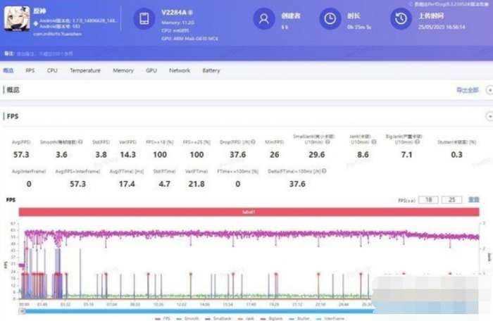 vivo S17 Pro半小时平均帧率可以跑到57.3帧,整体表现还是流畅的。