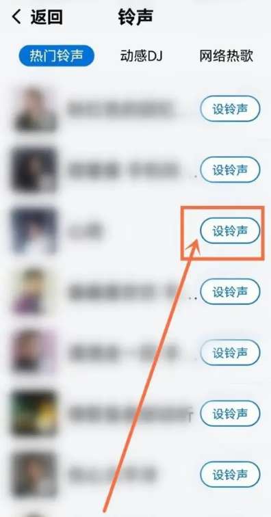 3、打开铃声库,选择喜欢的铃声,选择右侧“设铃声”。