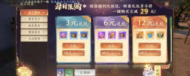 3、每日特惠中每日限购(任意自选箱)、任意月卡每日都可领取