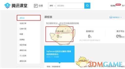 手机端:打开腾讯课堂首页下方菜单栏中的“课程表”,就可以看到当天的上课时长了。