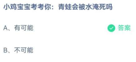 以上就是小编给大家带来的:小鸡宝宝考考你,青蛙会被水淹死吗?支付宝答题9月21日答案2022蚂蚁庄园。更多相关攻略,请点击关注创意手游查看!