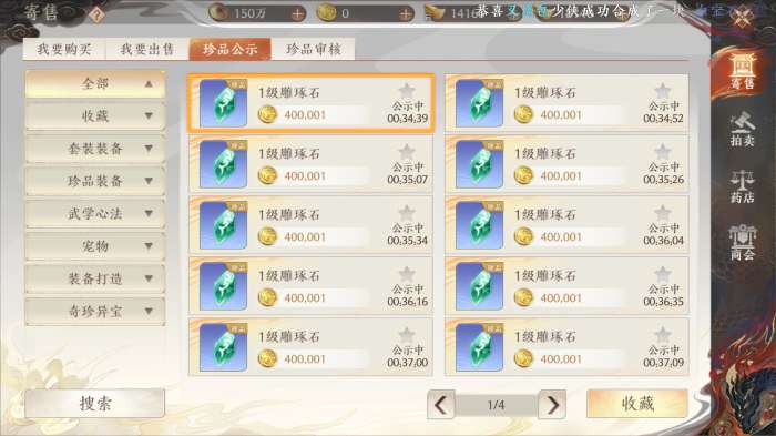 ◆ 出售珍品道具会有一定时间的审核期,需要审核通过以后才能得到金币。