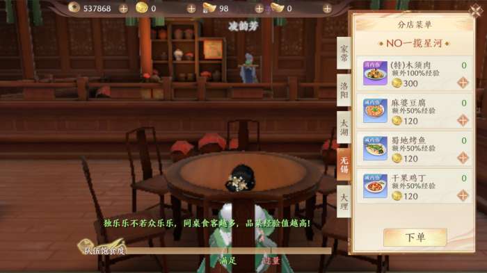 还可以直接点击【点餐】补充自己的饱食度,吃饭是没有次数限制的,但是饱食度达到上限时候,将无法通过吃饭获得经验值。