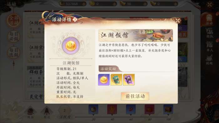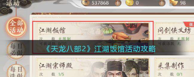 《天龙八部2》江湖饭馆活动攻略
