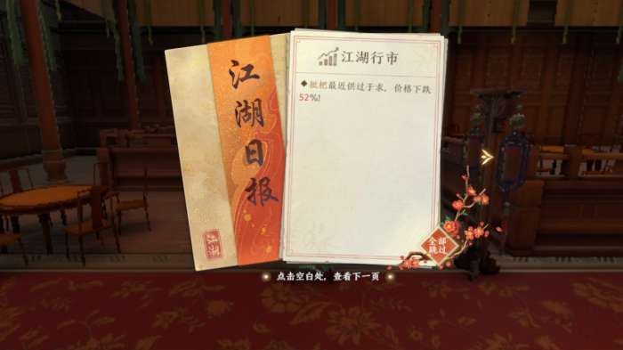 等待的时候少侠可以查看【江湖日报】查看最近江湖上发生的各类轶事。