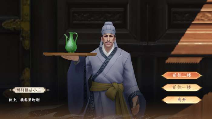 少侠点击「江湖饭馆」界面的【前往活动】会自动寻路到<醉轩楼>店小二处,我们选择楼层前往即可。