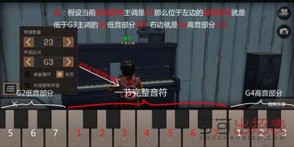 23键整首歌G3为主调 ()里面是G2低音部分 【】里面是G4为高音部分