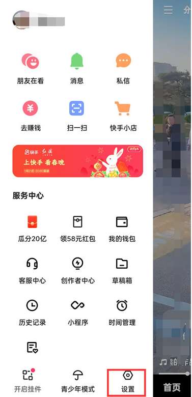 1、打开快手极速版,之后点击左上角的【三横】,然后在当前的页面点击【设置】;