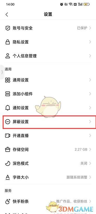 2、最后进入到设置的页面之后就可以看到【屏蔽设置】了。