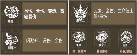 增幅刻印优先拿穿透,配合繁星一核心穿透和本期因子刻印达到100%元素穿透,如果歪了的话可以拿高额易伤。