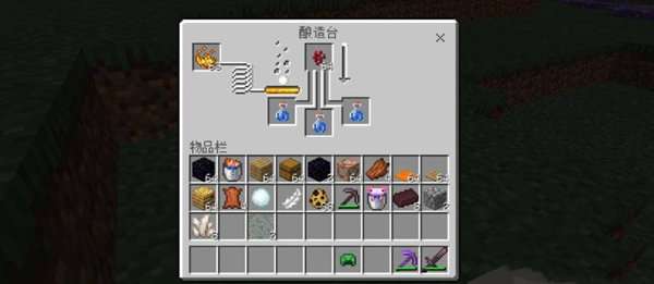 3、最左边放烈焰粉,下面放水瓶,上面放粗制药水。