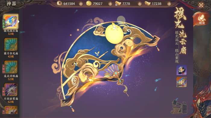 完成神器任务可以获得【吕正臣的传家宝】获取后,可以进行第一次【铸造】获取32级神器。