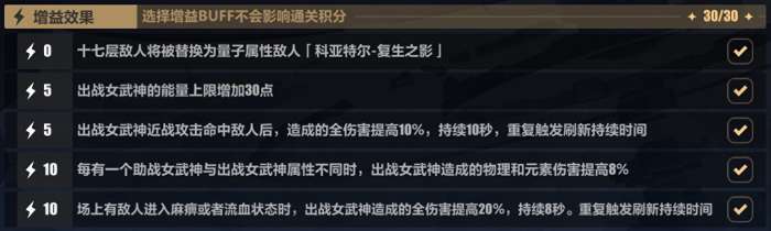 第17层boss选量子泥鳅,然后把前4条都选上。