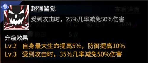 重装传统专属属性,生命值提高、防御提高、几率减伤害都比较实用。