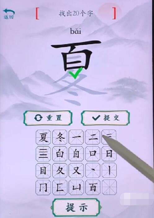 夏、冬、一、二、三、亖、白、自、口、日、目、夂、又、丶、丨、丨、冂、匚、凵、百、石。