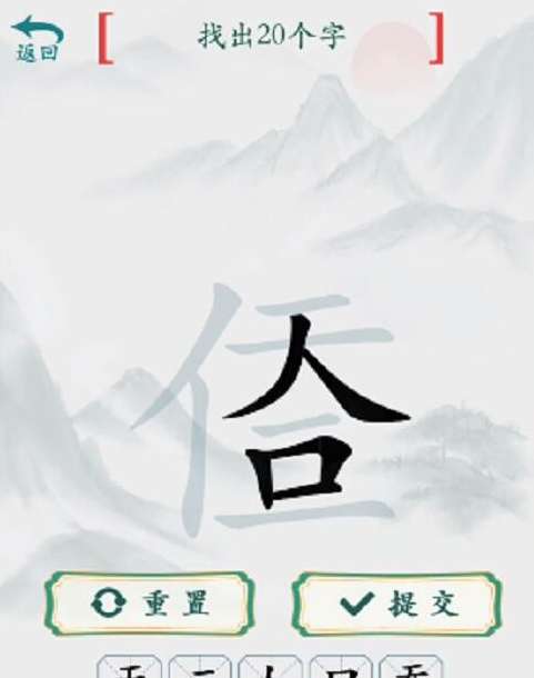 天、二、人、口、呑、合、大、一、三、亖、亻、㐰、仸、仨、仁、仈、佮、吞、夻、矢。