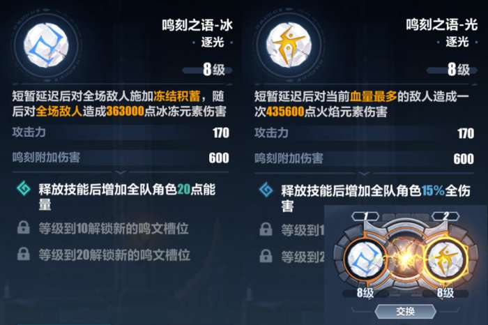 2、任意鸣刻的词条带SP回复能极大降低满分难度,无SP回复词条格蕾修、识律需多打分支回SP,