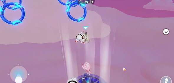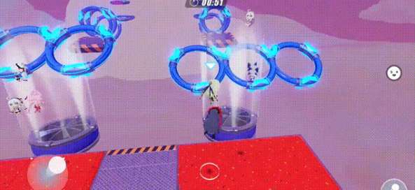 1、开局靠近右边蹦床,左边首轮圆环位置很高很难拿到分数,趁右边第一个圆环还未到达蹦床处可借助前面的风场机关先一步拿到分数;