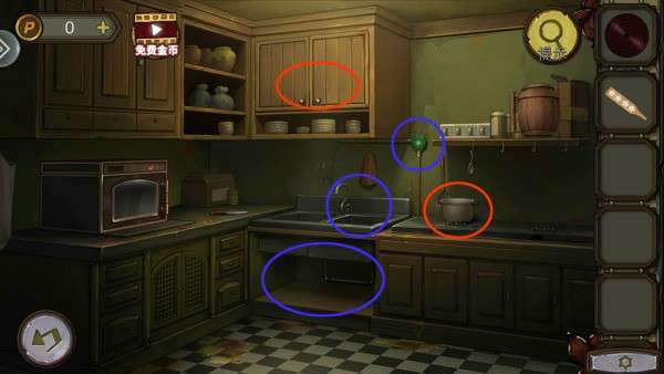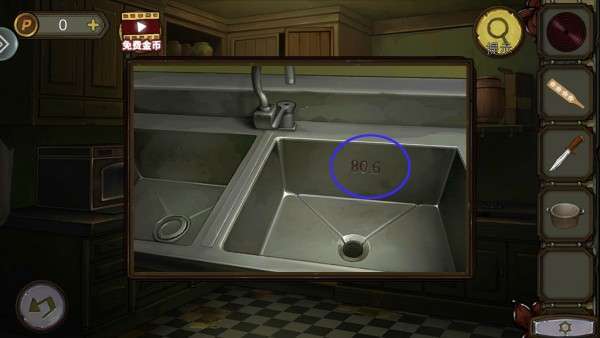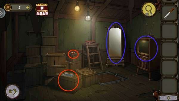 9、最后我们到地下室先点镜子拿到黑布,用黑布在厨房水龙头浸湿擦镜子。再用小刀割开苹果拿电池,箱子机关解开即可获得遥控器,组合电池遥控器即可打开电视。