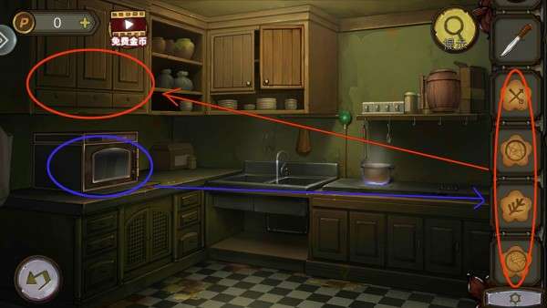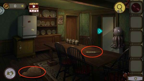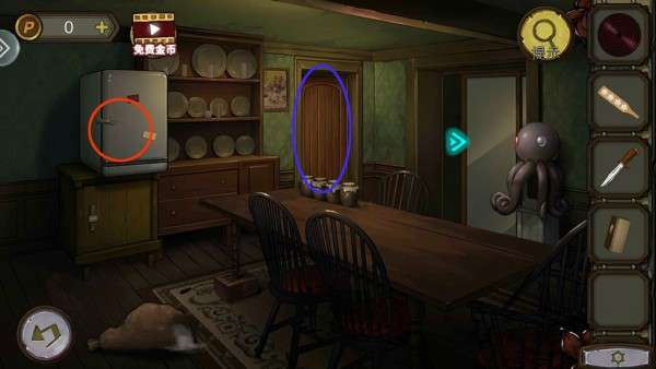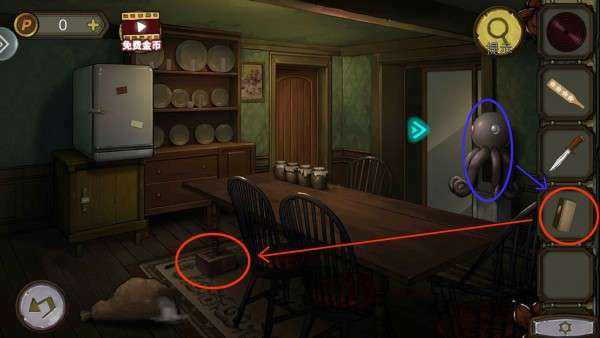 8、然后我们用三角形木块打开餐厅冰箱,拿到钥匙,用钥匙打开地下室门。