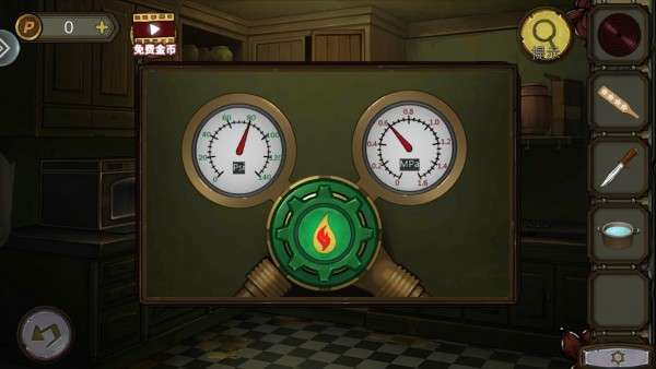 4、我们根据洗碗池线索,打开气阀把锅放炉上烧水,贝壳放锅里拿到珍珠。