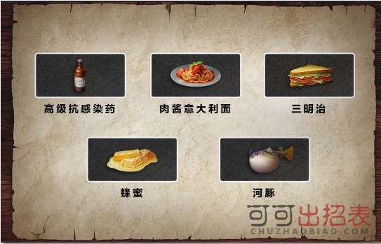 高级抗感染药肉酱意大利面和三明治让你的伤害更上一层楼同时为了防止血量下降过多我们还可以准备好回复食物河豚和蜂蜜更配哦~
