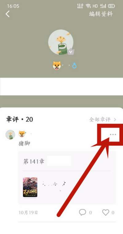 3、然后这里会有我们所有的评论记录,我们找到想删除的那条评论,接着点击右上角的三个点。