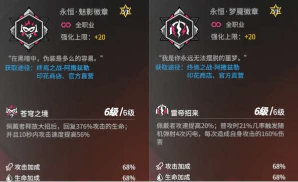 梦魇徽章则可以将输出最大化,徽章提供的攻速和触发效果都非常适合清理成堆的敌人。