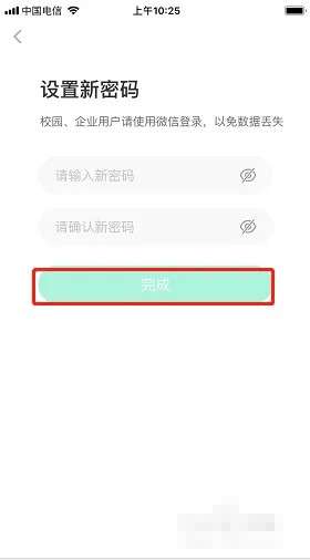 6、输入新密码,点击【完成】即可。
