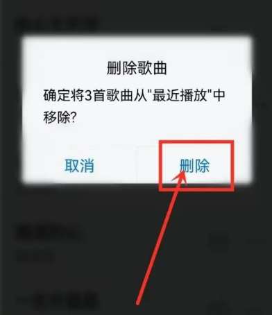 4、之后会弹出确认删除最近一次播放的X首歌曲,点击【删除】确认删除歌曲;
