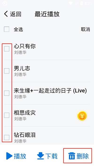 5、删除后,最新的记录中只剩下未删除的收听记录,完全删除就没有收听记录。
