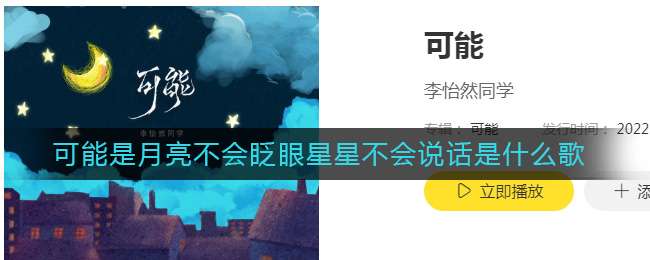 “可能是月亮不会眨眼,星星不会说话,让你觉得孤单啦。”是抖音上现在很火的一首歌,来自李怡然同学演唱的《可能》,那么今天小编就给大家介绍一下可能是月亮不会眨眼星星不会说话是什么歌,有需要的小伙伴不要错过了。
