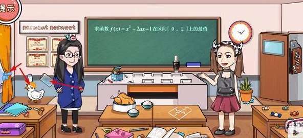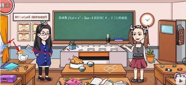 1、将讲台上蓝色的粉笔拖到蓝色女孩的身上,然后将扣子全部涂成蓝色就可以获取【蓝扣】。