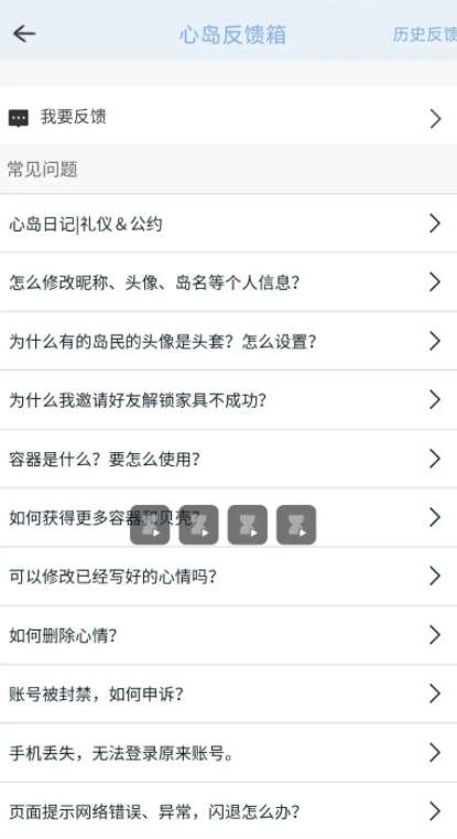 1、在心岛日记我的页面中找到问题反馈选项,点击后进入心岛反馈箱界面。