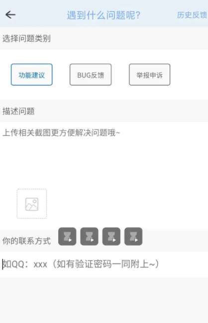 3、在遇到什么问题呢页面中,选择问题类别,输入描述问题内容,留下联系方式,然后点击界面最下方的提交按钮即可。