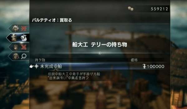 2、开启后,看完一段剧情,然后去“船匠 提莉”处花100000块钱买一件未完成的船。
