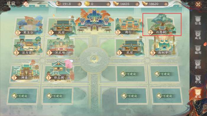 许愿树建筑等级越高,许愿宝箱奖励越丰厚! 快让帮会管理者升级建筑吧!