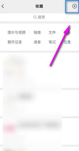 3、然后我们就可以在收藏的页面中点击右上方的加号;