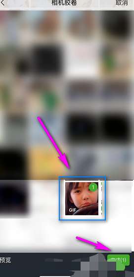 5、然后我们点击选择自己要发送的gif动图,点击【完成】;