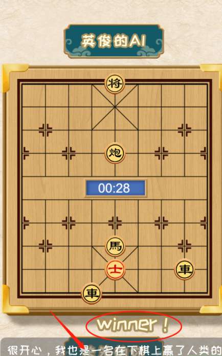 2、然后随意移动一下我们的士或者是帅,然后AI就会把我们的帅给吃掉,吃掉后它就会发表获胜感言。