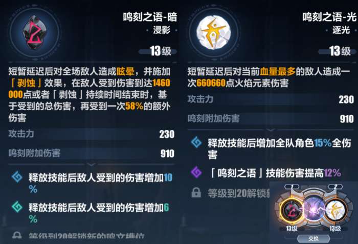 3、鸣刻之语-暗和鸣刻之语-光的释放顺序和时机:顺序为先暗后光;除最后一波外,其余波次中每波只放一轮“暗-光”,这样做可避免鸣刻技能循环出错。