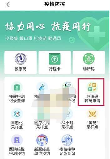 1、进入苏周到,点击“疫情防控”找到“苏康码转码申请”。