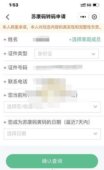3、按要求填写信息,包括姓名、证件号码、联系电话、您当前所在社区和您被赋黄码的日期。