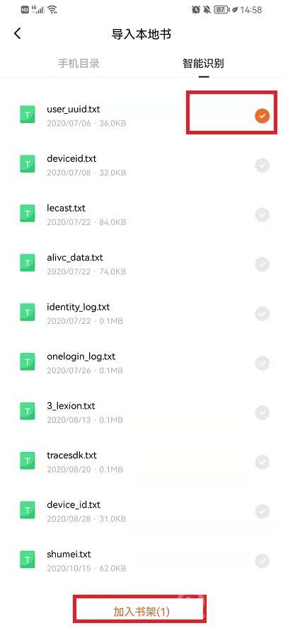 5、最后只需要找到我们下载好的小说然后点击加入书架就可以了。
